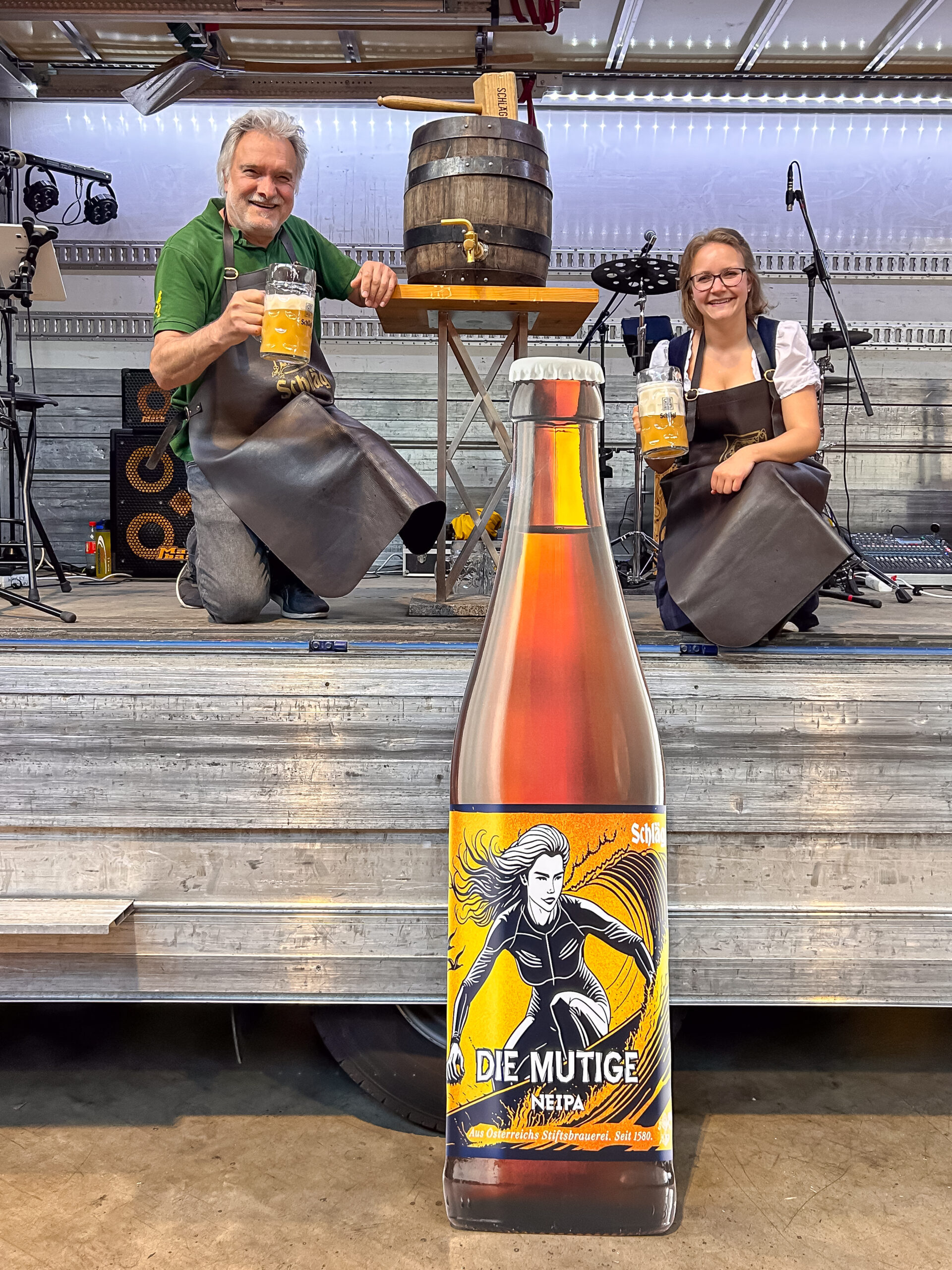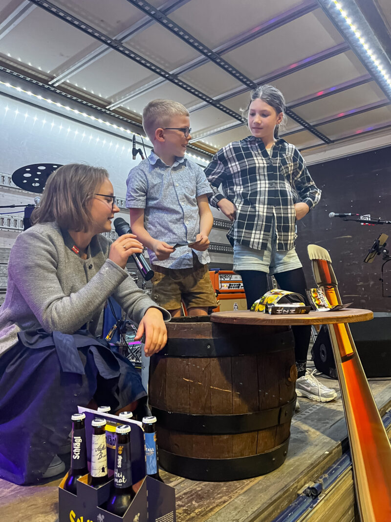 Der Höhepunkt des Abends war wie immer der Fassanstich von Fass Nummer 6 „die Mutige“. Mit sicherer Hand durchgeführt von Rudi Kölbl von Florianibräu. Eine Besonderheit in diesem Jahr: Nur bei diesem Fass wussten die Gäste bereits im Vorfeld, welches Bier sich darin befand, denn „die Mutige“ feierte an diesem Abend ihre Premiere. Als erstes Kreativbier, das im großen Sudhaus gebraut wurde, stand sie ganz besonders im Mittelpunkt – und wurde damit zum Star des Abends. Passend zur Premiere wurden Gutscheine für „die Mutige“ ausgegeben, die ab 4. Mai sowohl in der Schlägl Bierwelt als auch beim Rampenverkauf eingelöst werden können.
